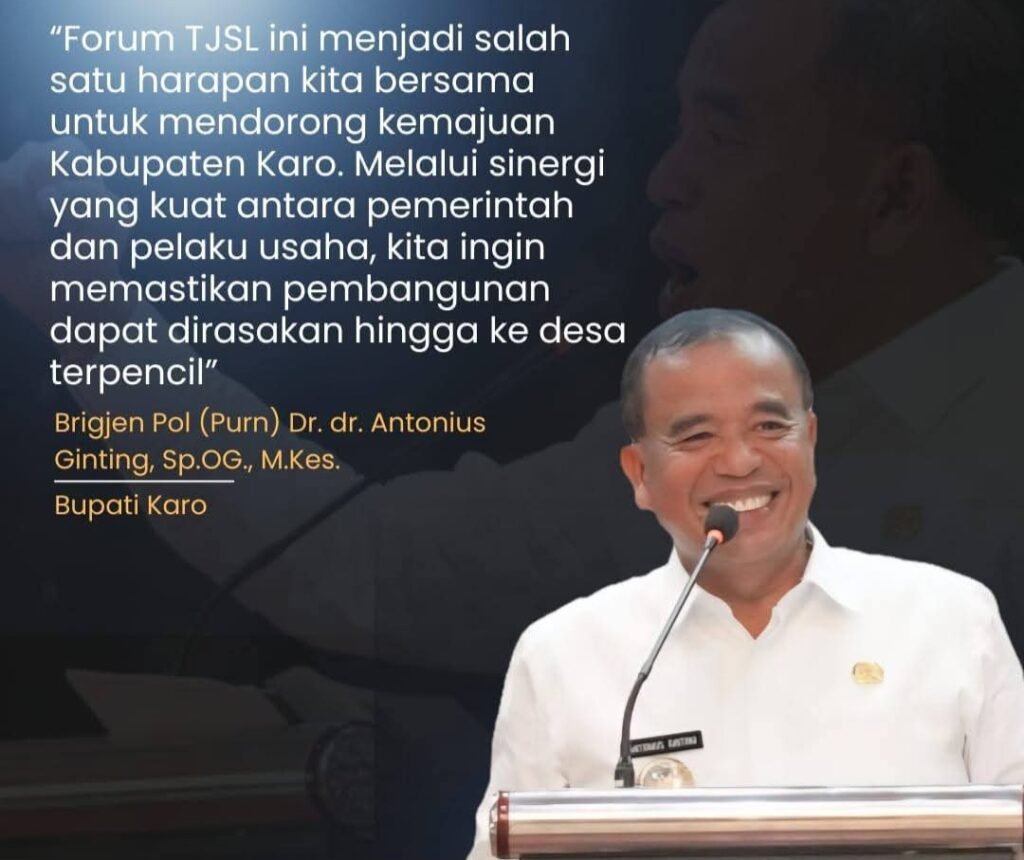Bupati Karo, Brigjen Pol (Purn) Dr. dr. Antonius Ginting, Sp.OG., M.Kes., menegaskan bahwa pelantikan Forum Tanggung Jawab Sosial dan Lingkungan (TJSL) di Kabupaten Karo menjadi momentum penting dalam mendorong kemajuan daerah melalui kolaborasi antara pemerintah dan dunia usaha.