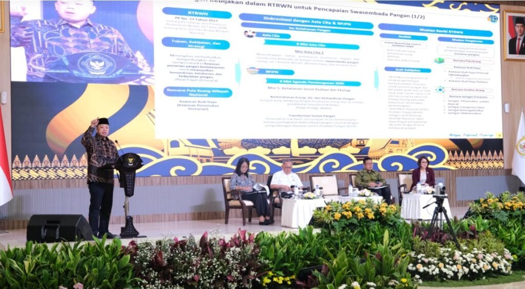 Dalam paparannya, Menteri Nusron menjelaskan strategi Kementerian ATR/BPN mendukung ketahanan pangan, mulai dari perlindungan Lahan Pertanian Pangan Berkelanjutan (LP2B), penerapan skema Lahan Sawah yang Dilindungi (LSD), hingga optimalisasi tanah telantar untuk redistribusi kepada masyarakat. Berdasarkan data Kementerian ATR/BPN, penerapan LSD terbukti menekan alih fungsi lahan sawah secara signifikan.