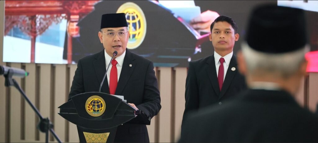 Wakil Menteri Agraria dan Tata Ruang/Wakil Kepala Badan Pertanahan Nasional (Wamen ATR/Waka BPN), Ossy Dermawan, melantik sejumlah Pejabat Administrator dan Pengawas, di Aula Prona, Jakarta, Kamis (07/08/2025). Dalam sambutannya, ia mengajak pejabat terlantik untuk menjalankan tugas yang diamanahkan dengan dedikasi terbaik.