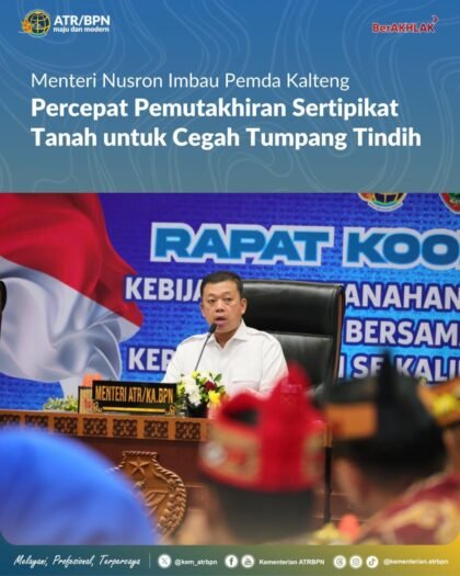 Nasional | • 14 Desember 2025 • Menteri Nusron Ingatkan Pemda Kalteng Percepat Pemutakhiran Sertipikat Tanah untuk Cegah Tumpang Tindih Palangka Raya, sorakaro.com Menteri Agraria dan Tata Ruang/Kepala Badan Pertanahan Nasional (ATR/BPN), Nusron Wahid, meminta...