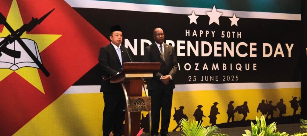 Menteri Agraria dan Tata Ruang/Kepala Badan Pertanahan Nasional (ATR/BPN), Nusron Wahid hadir mewakili pemerintah Indonesia dalam acara peringatan Hari Kemerdekaan ke-50 Republik Mozambik, yang digelar di Jakarta pada Jumat (11/07/2025). Dalam sambutannya, Menteri Nusron menekankan peringatan emas ini sebagai tonggak bersejarah untuk membuka peluang kerja sama yang lebih luas antara Indonesia dan Mozambik di berbagai bidang.