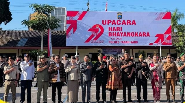 Polres Tanah Karo gelar upacara peringatan Hari Bhayangkara ke-79 Selasa (01/07/2025) di halaman Mapolres Tanah Karo. Upacara yang dipimpin langsung Kapolres Tanah Karo AKBP Eko Yulianto, S.H., S.I.K., M.M., M.Tr.Opsla, sekaligus pembacaan amanat Kapolda Sumatera Utara.