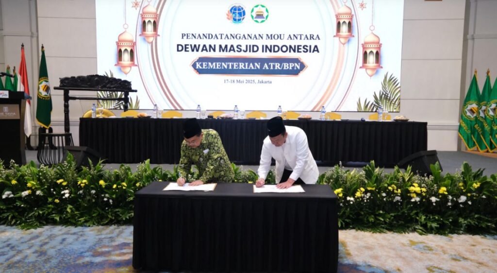 “Kami bertekad dalam dalam lima tahun ini minimal 90% dari tanah wakaf yang belum terdaftar bisa kita tuntaskan. Dengan adanya MoU ini, kami Kementerian ATR/BPN pun merasa sangat terbantu,” ujar Menteri Nusron usai menandatangani Nota Kesepahaman/MoU antara Kementerian ATR/BPN dan DMI, dalam acara Rapat Kerja Nasional (Rakernas) dan Halal Bihalal DMI, di Tavia Heritage Hotel, Jakarta.