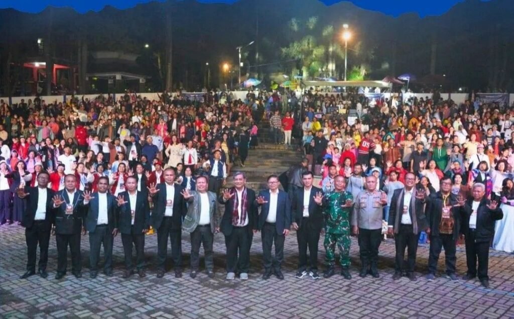 Bupati Karo, Brigjen Pol (Purn) Dr. dr. Antonius Ginting, Sp.OG, M.Kes, yang diwakilkan oleh Wakil Bupati Karo, Komando Tarigan, S.P., menghadiri Perayaan Paskah Umat Kristen Tanah Karo Tahun 2026 yang digelar di Open Stage Berastagi, Minggu (19/4/2026).