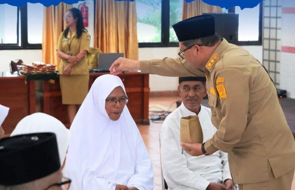 Bupati Karo, Brigjen Pol (Purn.) Dr. dr. Antonius Ginting, Sp.OG., M.Kes., yang diwakilkan oleh Wakil Bupati Karo, Komando Tarigan, SP., melaksanakan kegiatan Njunjungken Beras Piher kepada Jemaah Haji Kabupaten Karo Tahun 1447 H/2026 M yang dilaksanakan di Aula Rakoetta Brahmana, Kabanjahe, Senin (20/04/2026). Kegiatan ini merupakan tradisi masyarakat Karo sebagai bentuk doa, dukungan, serta ungkapan kebersamaan kepada para calon jemaah haji sebelum berangkat menunaikan ibadah ke Tanah Suci.