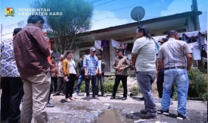 Bupati Karo, Brigjen Pol (Purn) Dr. dr. Antonius Ginting, Sp.OG., M.Kes, menghadiri puncak pelaksanaan Gotong Royong Masyarakat dan “Sambang Warga” di Desa Cinta Rakyat, Kecamatan Merdeka, pada Jumat (13/03/2026).
